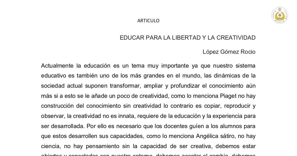 EDUCAR PARA LA LIBERTAD Y LA CREATIVIDAD