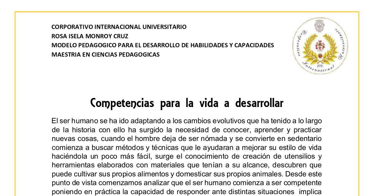 Competencias para la vida a desarrollar