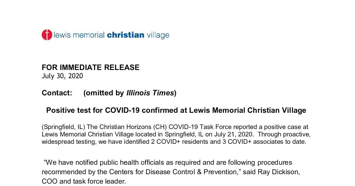 Positive test for COVID-19 confirmed at Lewis Memorial Christian Village