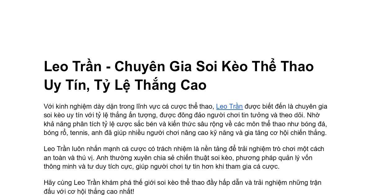 Leo Trần - Chuyên Gia Soi Kèo Thể Thao