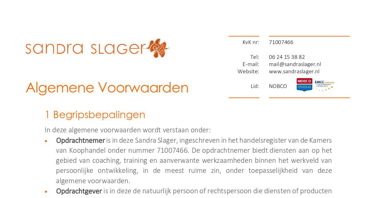 Opdrachtnemer is in deze Sandra Slager, ingeschreven in het handelsregister van de Kamers