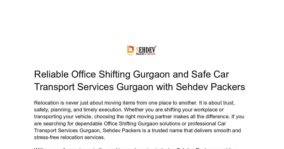 Transport Services Gurgaon, Sehdev Packers is a trusted name that delivers smooth and