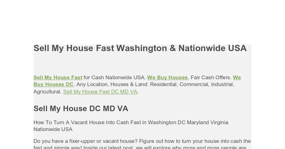 How To Turn A Vacant House Into Cash Fast in Washington DC Maryland Virginia