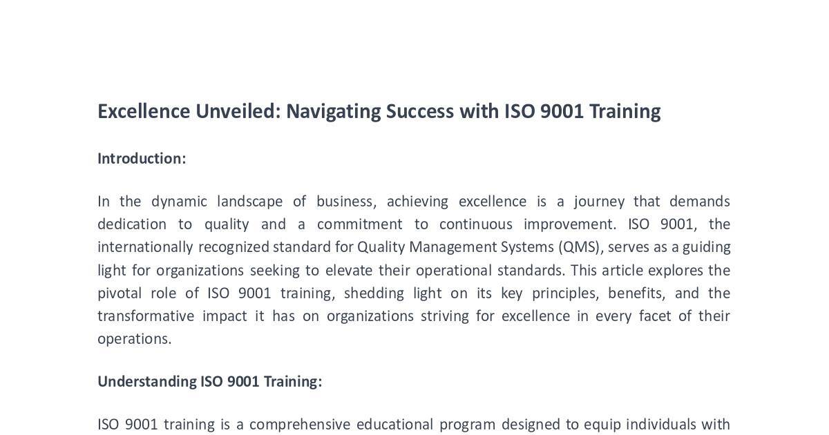 Excellence Unveiled: Navigating Success with ISO 9001 Training