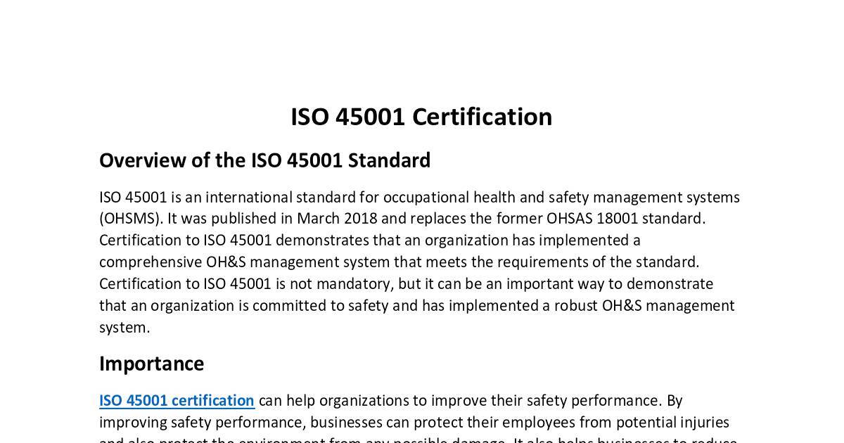 Certification to ISO 45001 is not mandatory, but it can be an important way to demonstrate