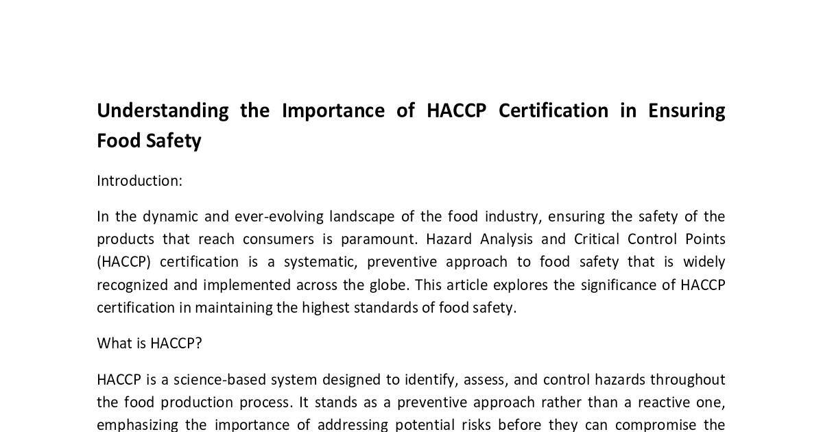 recognized and implemented across the globe. This article explores the significance of HACCP