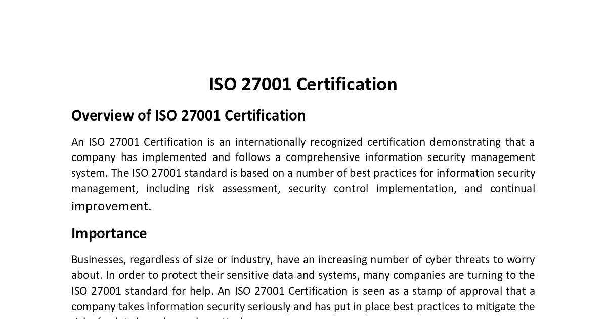 Overview of ISO 27001 Certification