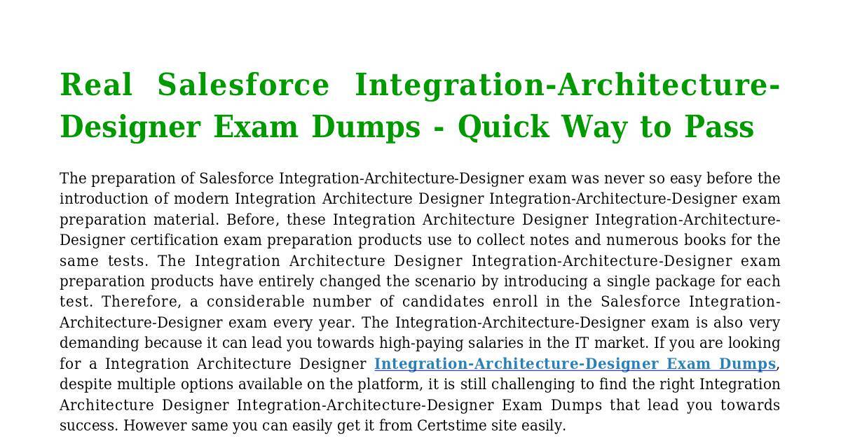 for a Integration Architecture Designer Integration-Architecture-Designer Exam Dumps,