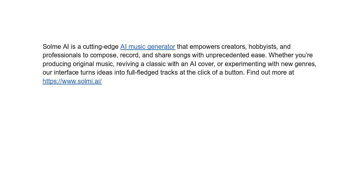 Solme AI is a cutting-edge AI music generator that empowers creators, hobbyists, and