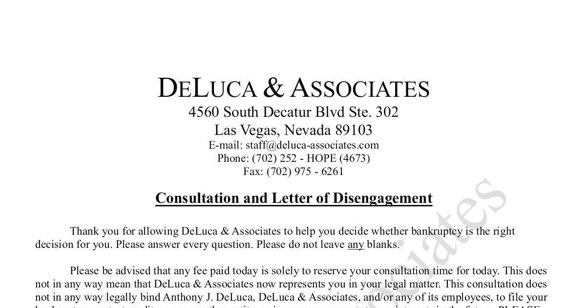 Thank you for allowing DeLuca & Associates to help you decide whether bankruptcy is the right