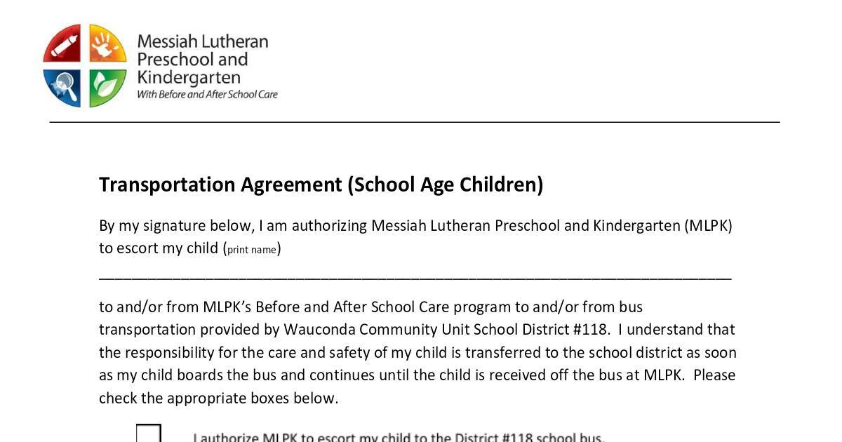 as my child boards the bus and continues until the child is received off the bus at MLPK. Please