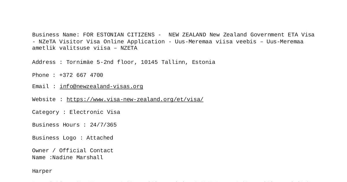 Business Name: FOR ESTONIAN CITIZENS - NEW ZEALAND New Zealand Government ETA Visa