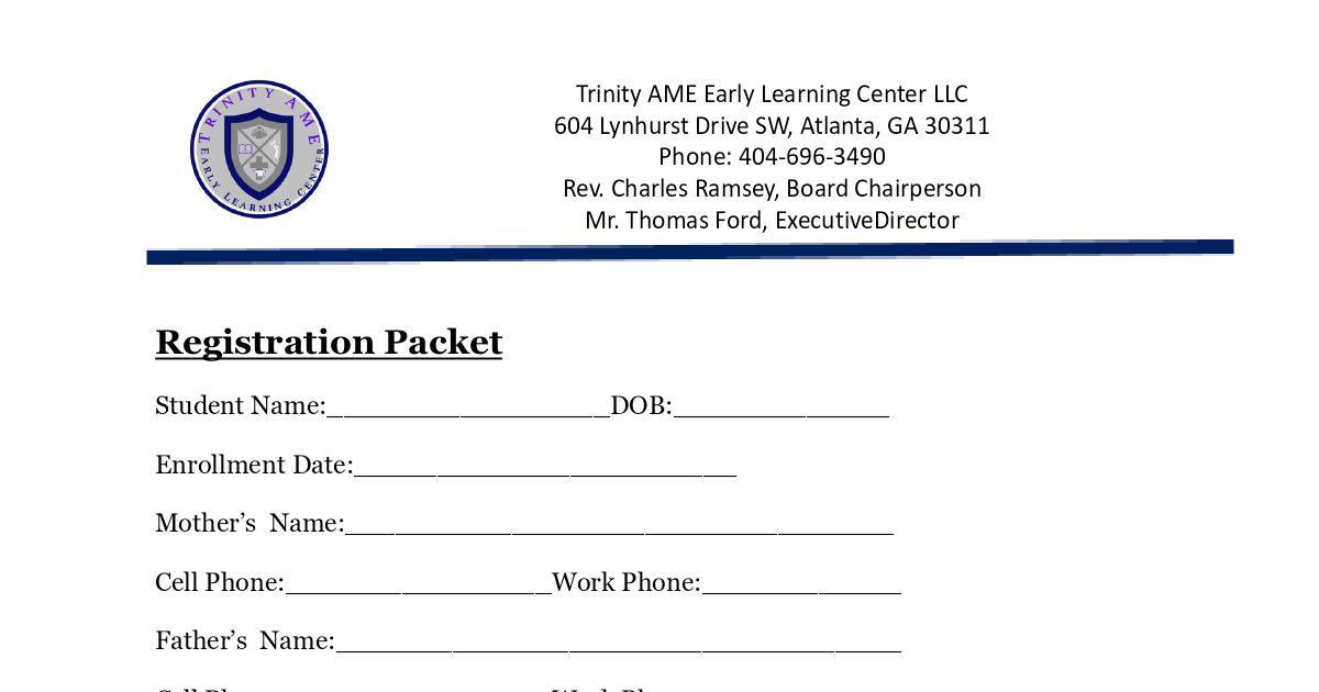 while in the care of Trinity AME Early Learning Center, LLC and the facility is unable to contact