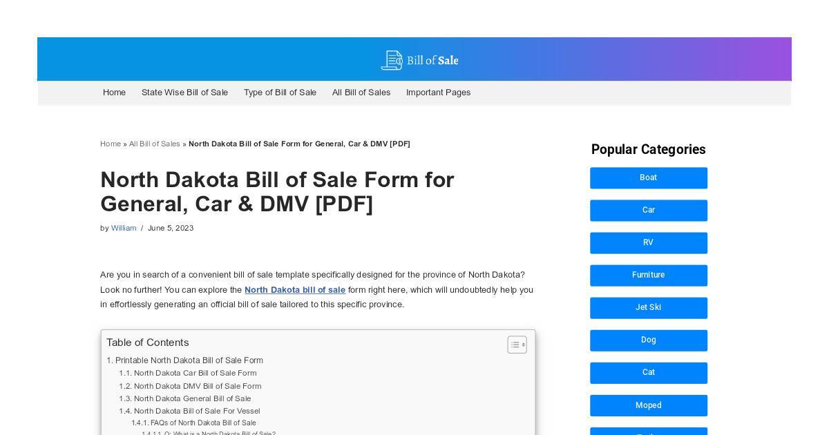Home » All Bill of Sales » North Dakota Bill of Sale Form for General, Car & DMV [PDF]