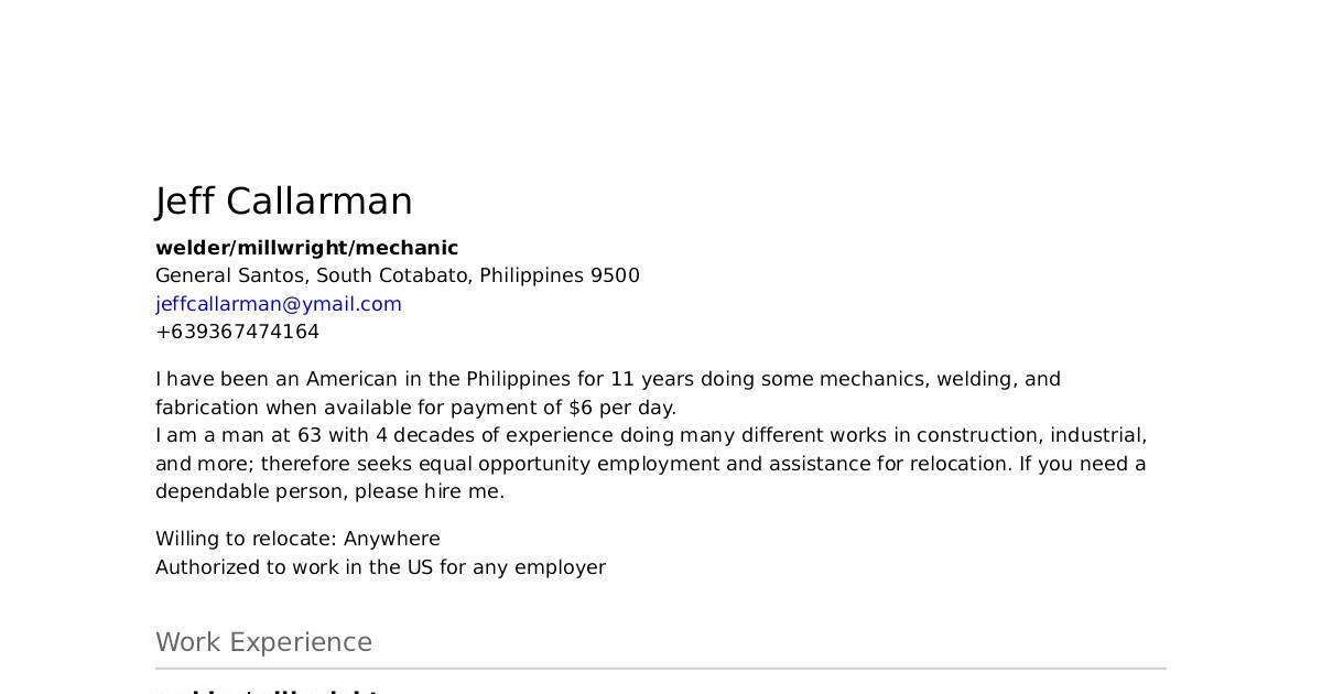 I have been an American in the Philippines for 11 years doing some mechanics, welding, and