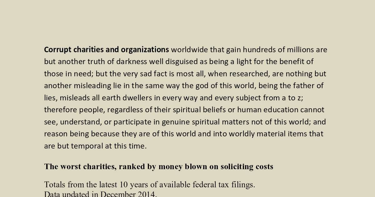 Corrupt charities and organizations worldwide that gain hundreds of millions are