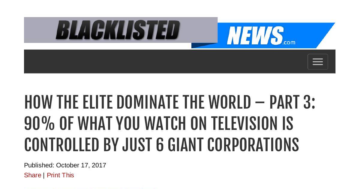 comes through your television is controlled by just 6 gigantic media corporations. Most of us are willingly