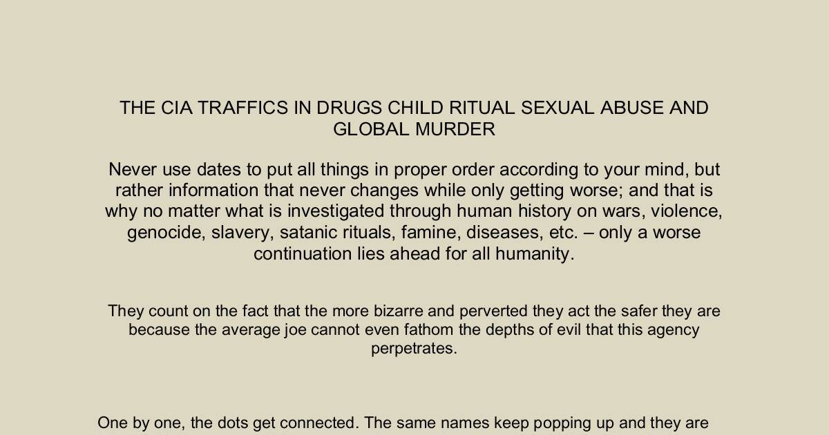 THE CIA TRAFFICS IN DRUGS CHILD RITUAL SEXUAL ABUSE AND
