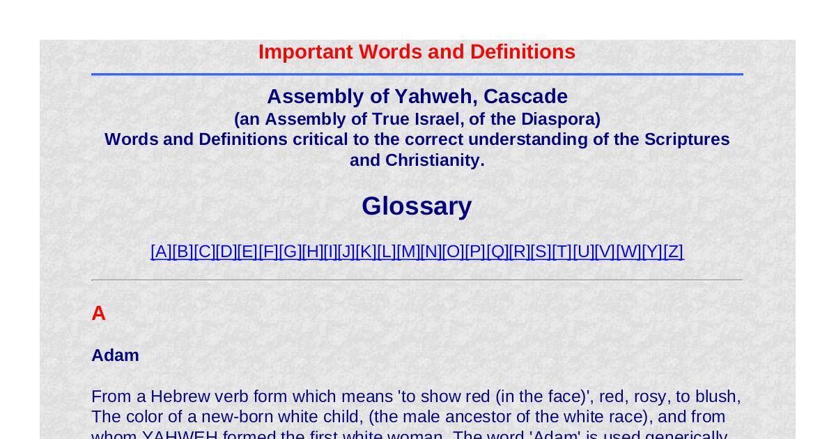 Words and Definitions critical to the correct understanding of the Scriptures