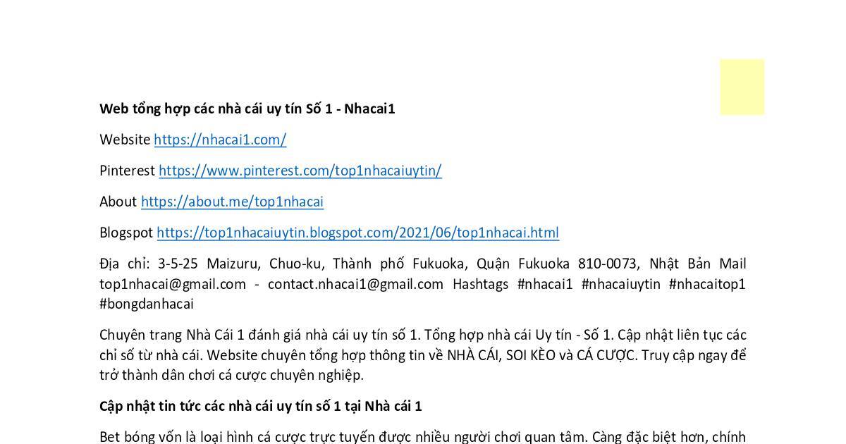 Nhacai1 - chuyên trang review nhà cái hàng đầu từ Nhật Bản. Một sản phẩm thuộc Fujio Yamada Corp,