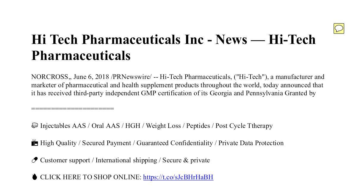 NORCROSS,, June 6, 2018 /PRNewswire/ -- Hi-Tech Pharmaceuticals, ("Hi-Tech"), a manufacturer and