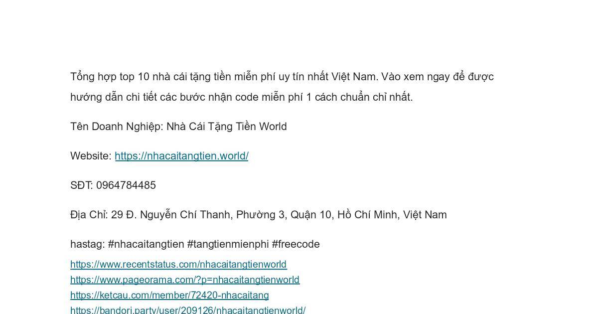 Tên Doanh Nghiệp: Nhà Cái Tặng Tiền World
