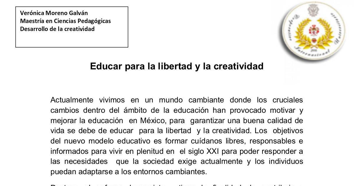 vida se debe de educar para la libertad y la creatividad. Los objetivos