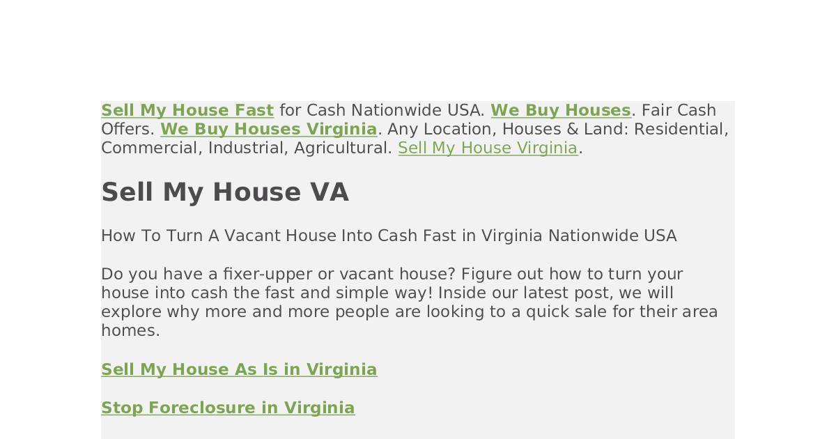 How To Turn A Vacant House Into Cash Fast in Virginia Nationwide USA